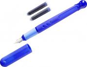 Чернильная ручка и синим чернильным картриджем. Картриджи стандартные, сменные. Перо из нержавеющей стали (иридиевый наконечник). Посрединке ручки резиновое покрытие для удобного захвата.
